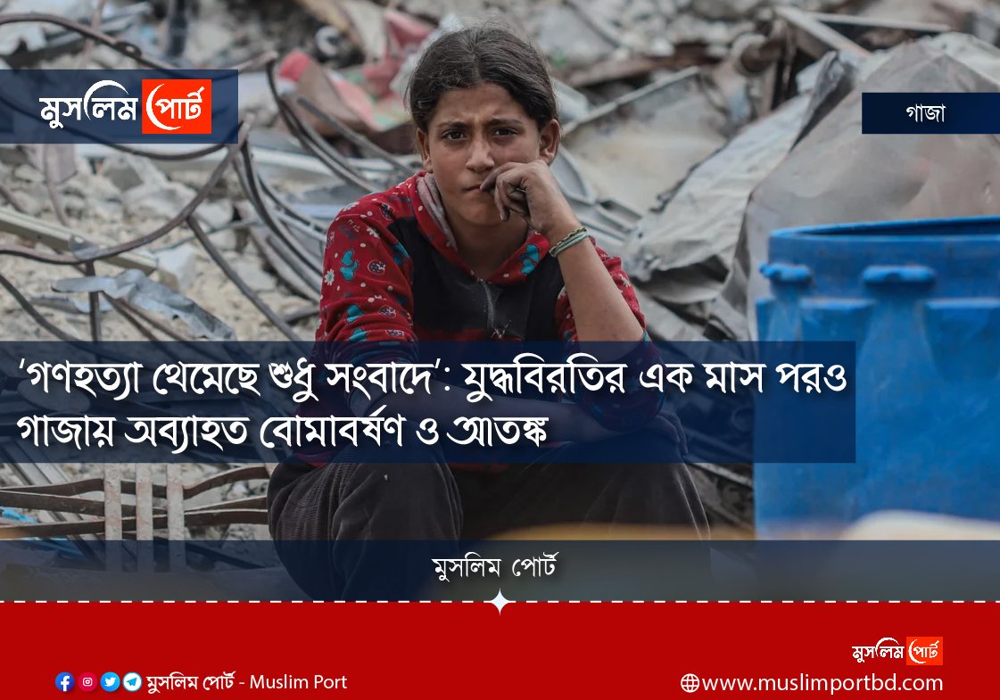 অবরোধও প্রায় আগের মতোই চলছে—চুক্তি অনুযায়ী যেখানে দৈনিক ৬০০ ট্রাক সাহায্য প্রবেশের কথা ছিল, সেখানে গড়ে ১৫০ ট্রাকের বেশি ঢুকতে দেওয়া হচ্ছে না।